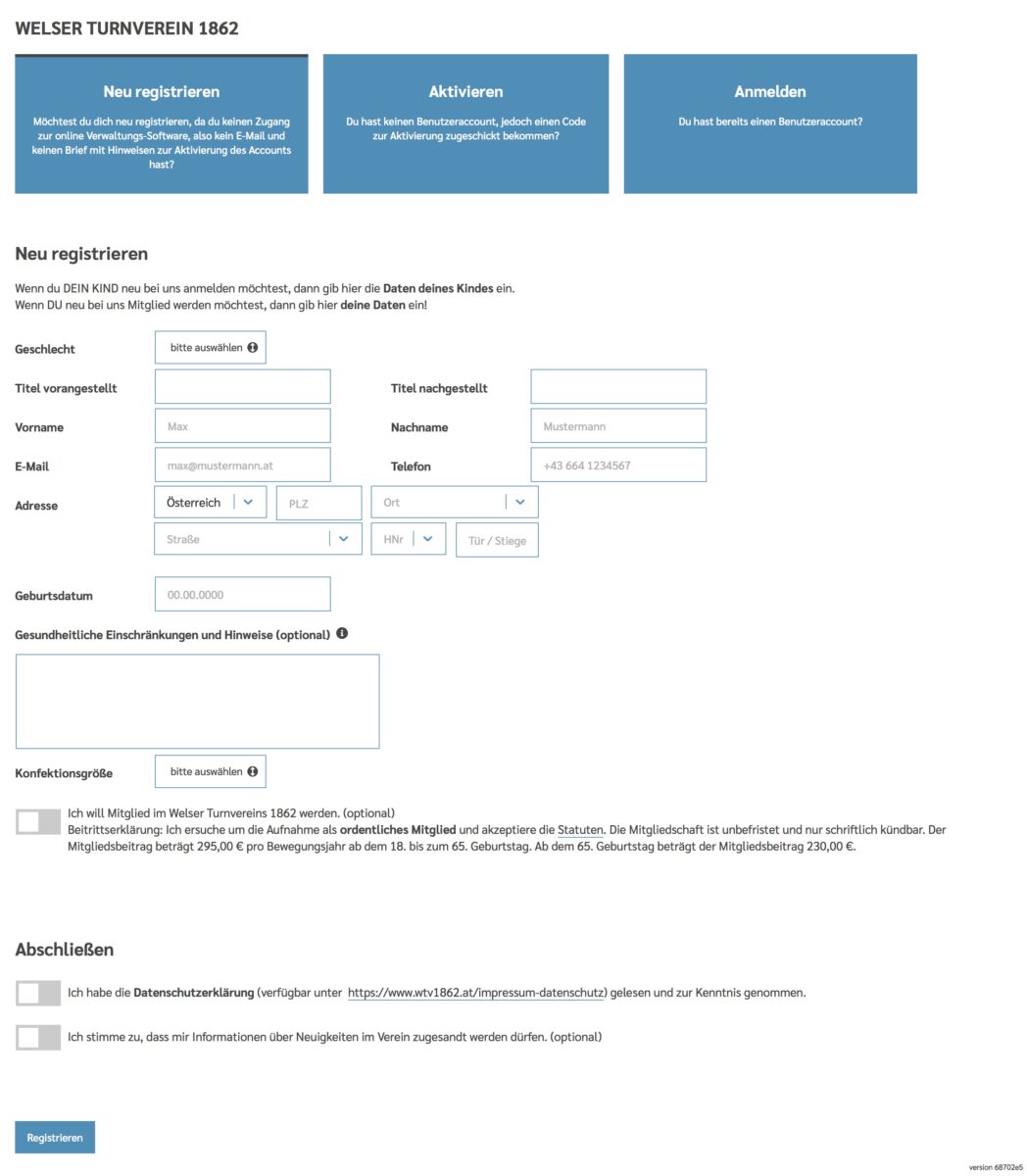 Optional kannst du auch direkt Mitglied im Welser Turnverein 1862 werden. Beachte hierbei bitte, dass der Mitgliedsbeitrag verbindlich zu bezahlen ist.