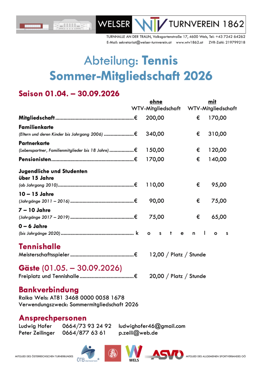 Mit einem knappen, aber umso erfreulicheren 5:4‑Erfolg ist die 1. Herrenmannschaft des Felbermayr Welser Turnverein 1862 in die neue Tennis-Bundesligasaison gestartet. Beim ersten Heimspiel…