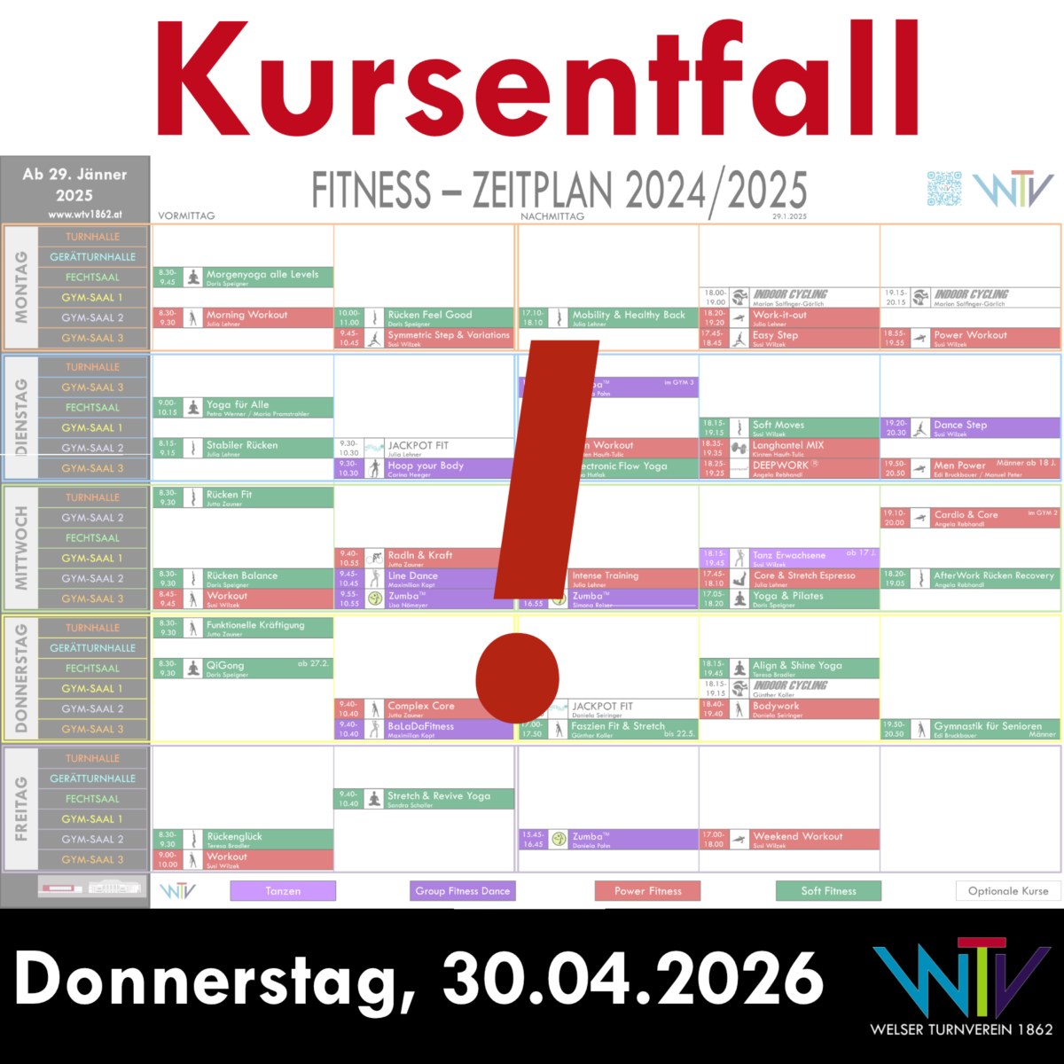 am Donnerstag, 30.04.2026 entfällt QiGong mit Doris Speigner.